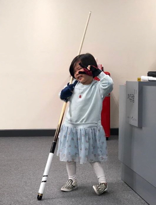 공개된 사진 속에는 차유람 딸의 모습이 담겨 있다. 차유람의 딸은 당구 큐대를 든 채 카메라를 향해 깜찍한 포즈를 취하고 있어 눈길을 끈다.