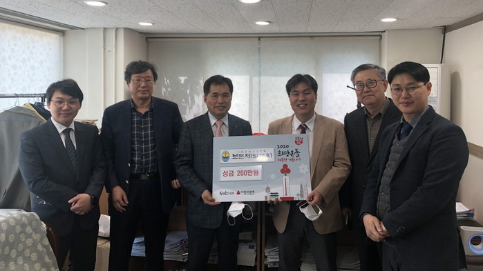 서울 성북구 보문동이 최근 지역내 보문제일교회로부터 코로나19로 어려움을 겪고 있는 이웃을 위한 성금 200만원을 전달 받았다. 이날 전달된 성금은 지역내 저소득계층에게 전달될 예정이다. 사진은 성금 전달식에서 관계자들이 기념촬영을 하는 모습. (사진제공=성북구청)