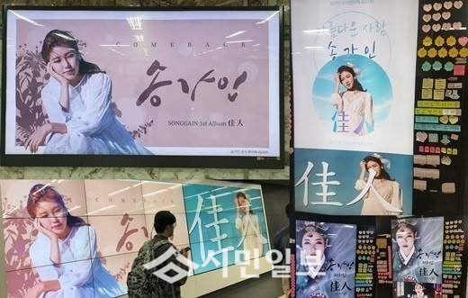 송가인 지하철 광고판에는 팬들의 응원 문구가 적힌 메모지가 빼곡히 붙어 있어 트로트계 아이돌의 위엄을 증명했다.