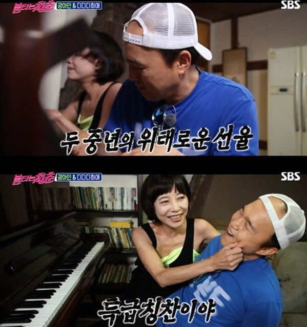 '불타는 청춘'에서 배우 김광규와 가수 김혜림이 드라마 '밀회'의 한 장면을 재연했다.