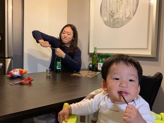 사진 속 이미도는 아들을 앉혀 놓고 맥주를 마시고 있다. 아들 역시 입에 오징어를 물고 맛있게 먹고 있어 사랑스러움과 코믹함을 동시에 자아낸다.