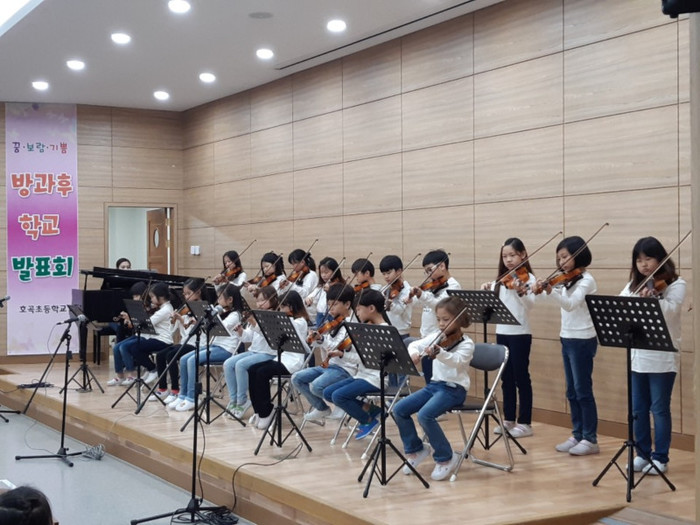 이날 고양 호곡초등학교 시청각실에서 예체능 관련 바이올린부, 통기타&우쿠렐레부, 방송댄스부, 음악줄넘기부, 치어리딩부의 발표 무대가 펼쳐졌다.