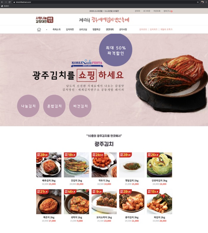 | ▲ 광주광역시 온라인 김치축제 홈페이지 이미지 / 광주광역시 제공 |