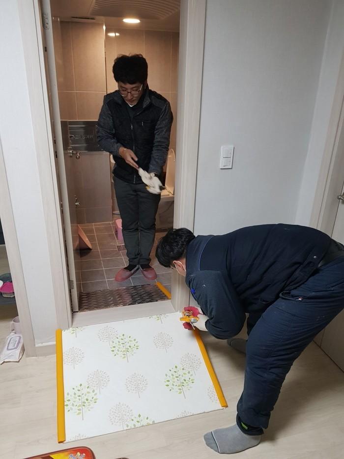 이번 주거환경개선사업은 치매와 당뇨로 인해 걷지 못하고 집에서 기어서 이동해야하는 노인의 화장실 진출입을 돕기 위해 진행됐다. 평소 거실과 화장실 간 높이가 17㎝로 홀로 있을 때 화장실을 가지 못하는 어르신을 돕기 위해 지산동 지역사회보장협의체 김준아 위원(한일 인테리어 대표)이 재능기부를 나선 것이다.