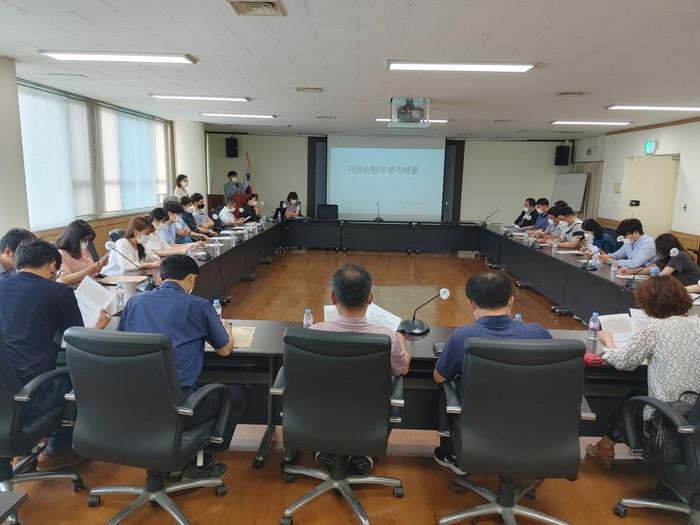 이날 간담회에서 시는 황정원 강사의 ‘2021년 찾아가는 쓰레기 줄이기 교육’을 진행했고, 구청 및 동 행정복지센터 담당자에게 협조사항을 전달하고 건의사항을 수렴했다.