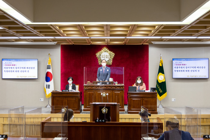 이의걸 의장은 개회사를 통해 "코로나19 확산으로 강력한 방역조치가 시행되고 있는 요즘, 질병관리청의 백신접종 계획에 따라 백신 접종에 적극 참여하고, 스스로 생활 방역에 최선을 다해달라"라고 당부했으며 "오늘부터 시작되는 2021년도 제2회 추가경정예산안과 조례안을 심사함에 있어 어려운 코로나 시국에 열리는 만큼 구민의 뜻이 최우선적으로 반영돼 지금의 위기를 극복할 수 있도록 지혜와 역량을 모아주길 바란다"말했다.