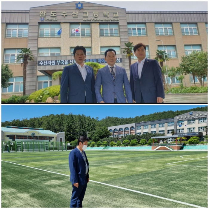 특히, 이 의원은 완도수고가 수산업계에서 크게 두각을 나타내고 있지만 모교의 낡은 기숙사 시설과 개교이래 정비되지 않은 운동장 및 선령이 20년 지난 완도수고 실습선 청해진호등 학교 기반시설이 낙후되어 있어서 도의원에 당선되자마자 예산결산특별원회에서 당시 이기붕 부교육감에게 강력히 건의한바 있다.