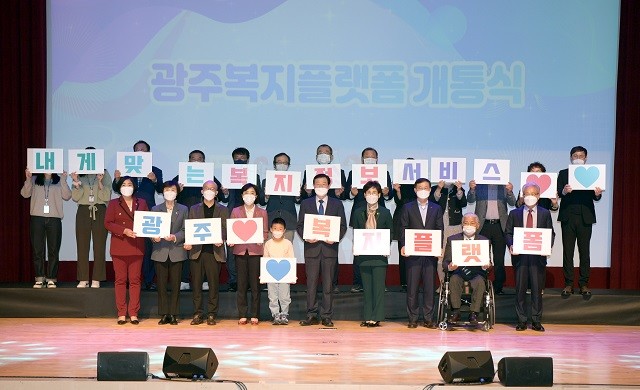 광주시는 18일 오후 시청 대회의실에서 이용섭 시장과 사회복지 유관 기관장, 복지활동가, 시민 등 50여 명이 참석한 가운데 광주복지플랫폼 개통식을 가졌다.