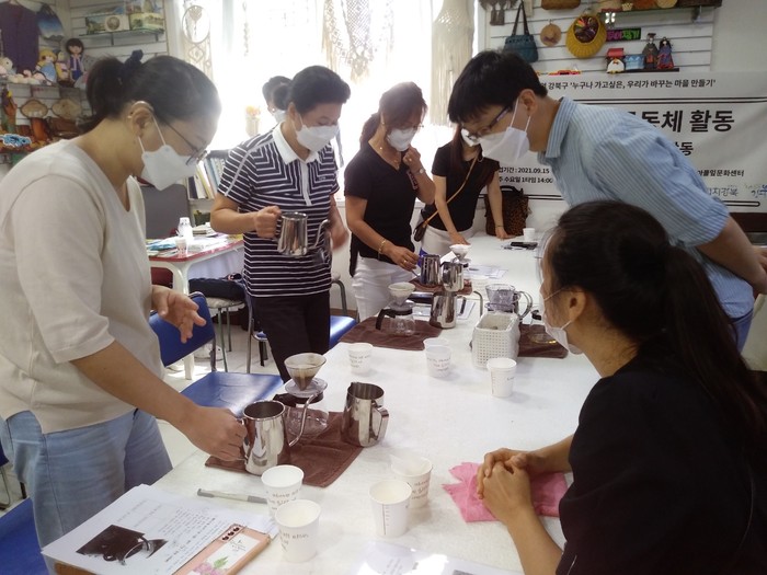 | ▲ '턱없는 마을 만들기' 사업의 일환으로 운영된 바리스타 체험 활동 모습. (사진제공=강북구청) |