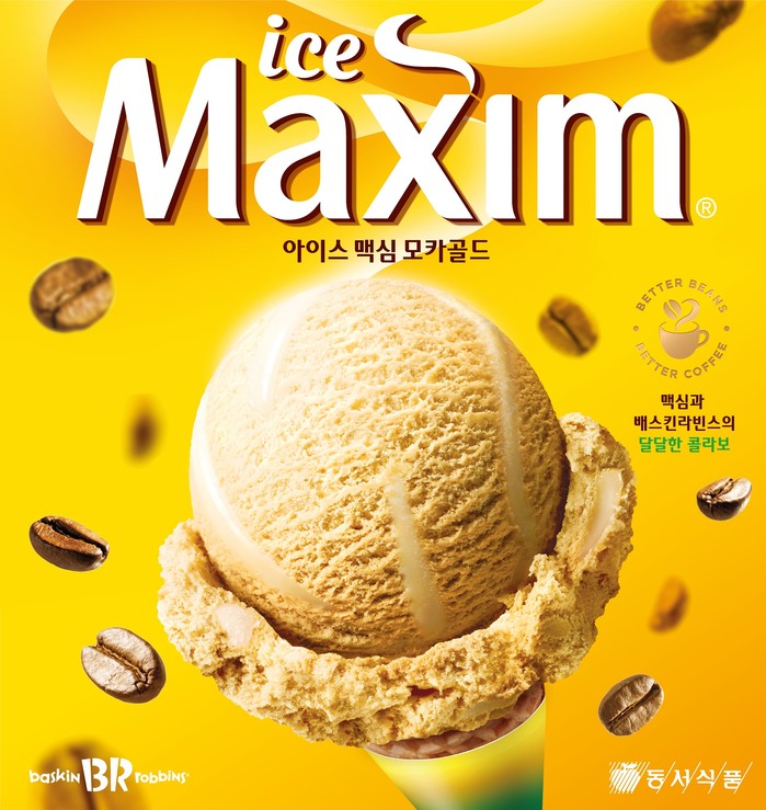 배스킨라빈스의 ‘아이스 맥심 모카골드’는 맥심 커피를 아이스크림으로도 즐길 수 있도록 기획됐다. 달달하고 진한 ‘맥심 모카골드 마일드’ 커피의 풍미를 그대로 살린 ‘맥심 모카골드 아이스크림’에 부드러운 크림 리본을 더해 달달한 맥심 커피의 맛과 풍미를 극대화했다.