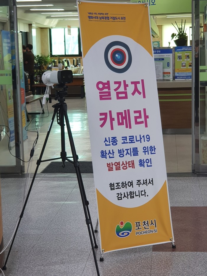| ▲ 본관 로비에 열화상 카메라를 설치한 모습. (사진제공=포천시청) |