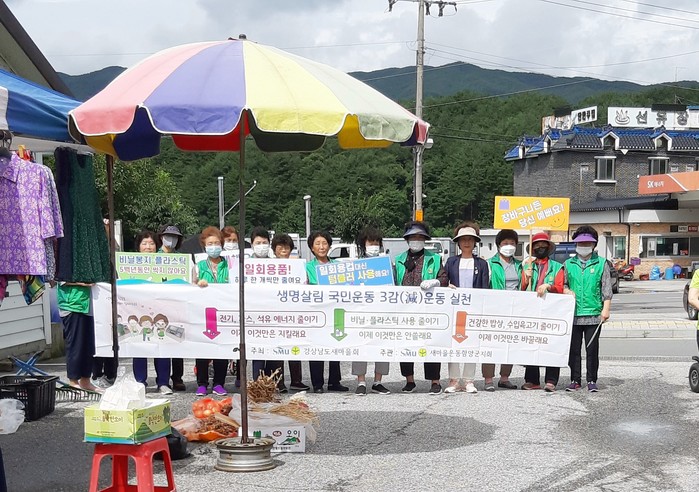 이날 캠페인에서는 3감(減)운동 캠페인과 더불어 비닐사용을 줄이자는 취지로 시장바구니 100개를 시장을 찾은 주민들에게 배부하였다.