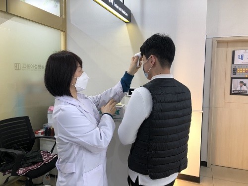 또한 정확한 동선 확인을 위해 1층 소아과와 연계된 문을 폐쇄하고 고운여성병원 방문 환자분들은 정문으로, 소아과 방문 환자분들은 후문으로 내원할 수 있도록 했다. 출입구에서는 모든 내원객을 대상으로 체온 측정으로 증상 유무를 확인하며 전산 조회를 통해 신종 코로나바이러스감염증 발생지역 입국 여부를 확인한다.