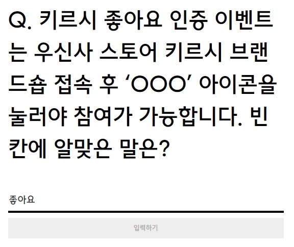 '키르시좋아요 인증이벤트는 우신사 스토어 키르시 브랜드숍 접속 후 'OOO' 아이콘을 눌러야 참여가능 합니다' 문제의 경우