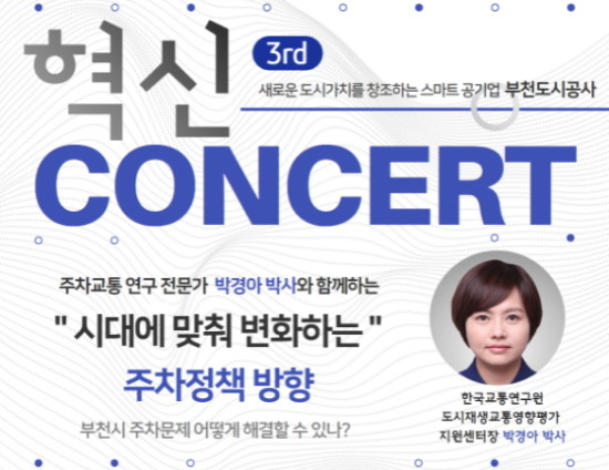 부천도시공사가 주관하는 이번 콘서트는 올해 세 번째로 열리는 행사로 교통과 주차분야 전문가인 한국교통연구원 박경아 박사를 초대했다.