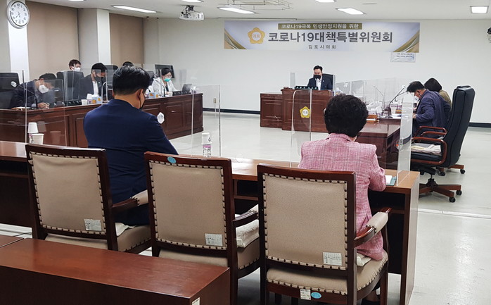 [김포=문찬식 기자] 경기 김포시의회 코로나19대책 특별위원회(이하 특위)가 최근 회의를 열어 담당부서의 코로나19 위기극복지원사업 지원현황과 향후 계획, 민원검토사항 등을 보고 받았다.