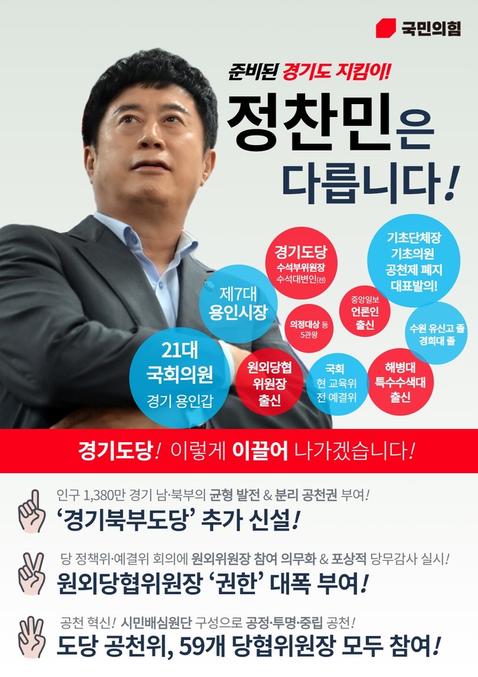 | ▲ 정찬민 의원 국민의힘 경기도당위원장 후보 등록마쳐_정찬민 후보 이력 및 공약 |