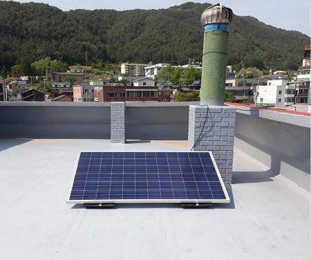 | 공동주택 경비실 냉난방 설비를 위한 옥상 소형 태양광 설치 =사진,광주광역시 제공 |