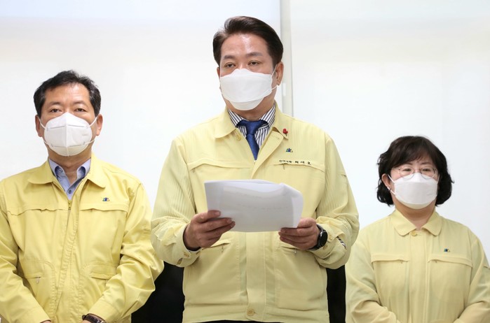 최대호 시장은 1일 기사송고실을 방문해 5명의 확진자 발생과정과 조치결과에 대해 이 같이 설명하며, 추가 감염 차단을 위해 모든 노력을 다하고 있다고 밝혔다.