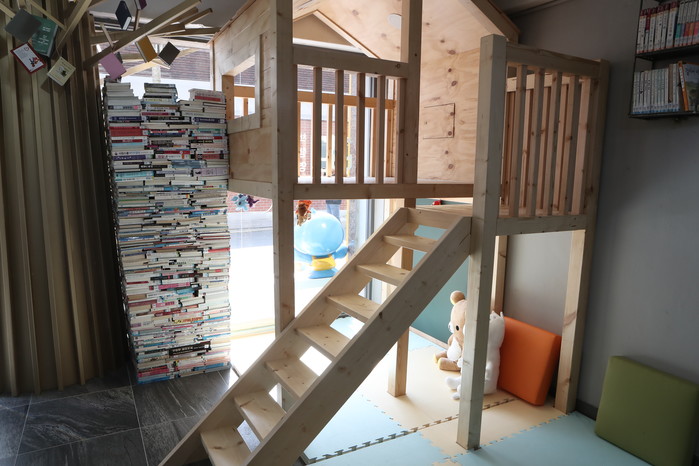 총 41㎡ 작은 규모로, 도서관을 상징하는 큰 나무를 입구에 두고 다락방, 크고 작은 테이블, 쿠션의자를 설치해 나무 그늘에서 쉬었다 가는 것처럼 편안하게 머물다 갈 수 있는 공간으로 마련됐다.