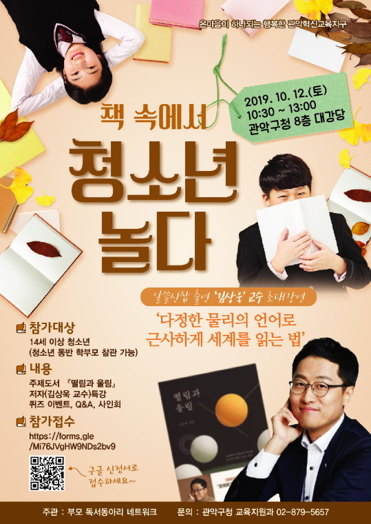 [시민일보 = 황혜빈 기자] 서울 관악구(구청장 박준희)가 오는 12일 오전 10시30분~오후 1시 구청 8층 대강당에서 ‘2019 책 속에서 청소년 놀다’ 행사를 개최한다고 밝혔다.