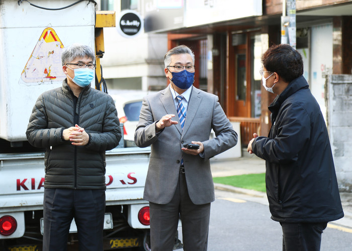 현장에서 작업관계자에게 사업현황 및 작업계획을 들으며 공중선이 얽혀있는 모습을 살펴본 김호재 의원은 “이번 공중선 합동 정비 사업으로 인해 안전한 보행환경 및 쾌적한 도심 환경을 주민에게 제공할 수 있길 기대하며, 무엇보다도 안전하게 작업을 진행하길 바란다”고 당부했다.