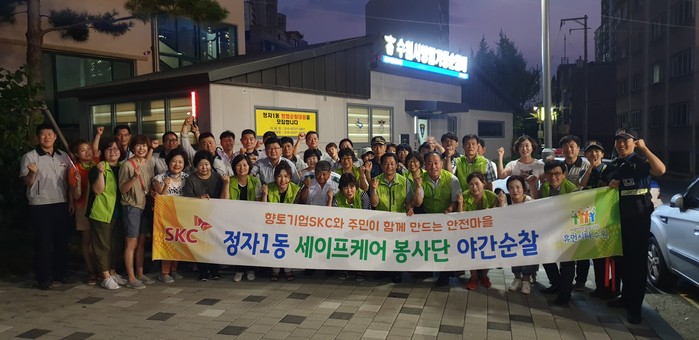 경기 수원시 장안구 정자1동은 지난 12일 세이프케어(Safe Care) 봉사단과 지역내 재개발구역 등의 방범 취약지역을 야간 순찰했다. 사진은 순찰에 참여한 이병규 장안구청장 및 관계자들이 기념촬영을 하는 모습.(사진제공=장안구청)