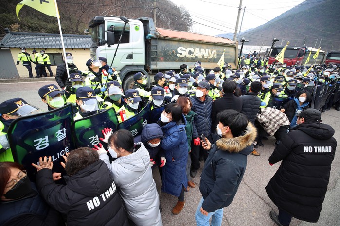 이와 관련해 사드기지 공사를 반대하는 주민 50여명은 성주군 초전면 소성리 마을회관 앞 도로에서 연좌시위를 하며 공사 차량 출입을 막았다.