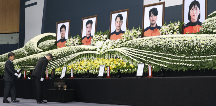 조사, 추도사, 고별사에서 고인 이름이 거명될 때마다 유가족들은 흐느끼며 눈물을 닦았으며, 소방청은 이들에게 1계급 특진과 훈장을 추서했다.
