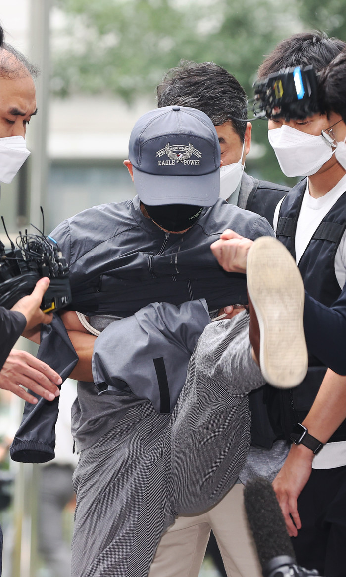 이날 오전 10시5분경 서울동부지법에 도착한 강씨는 취재진이 "피해 여성을 왜 살해했냐"고 묻자 마이크를 발로 걷어찼다.