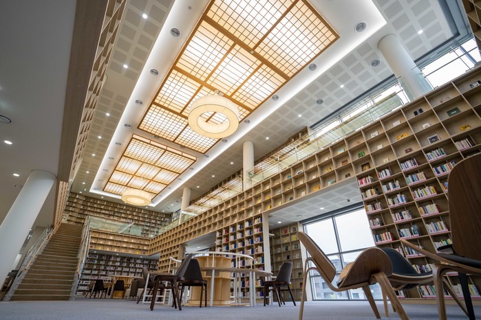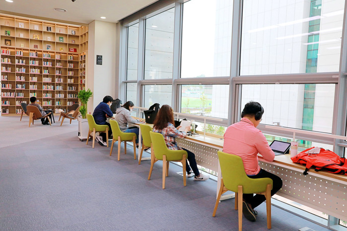 대신 시설 내부를 컨퍼런스 룸과 벽 없는 개방형 자료실, 키즈존, 청년 스타트업 스토어, 공연장, 커뮤니티 공간 등 다양하고 차별화된형태의 공간으로 조성하여 시민 누구나 자유롭게 모이고 소통할 수 있도록 구성했으며, 2층과 3층 종합자료실이 연결된 공간에는 원형 테이블과 소파를 설치해 집에서처럼 편안하게 책을 읽고 토론할 수 있도록 꾸몄다.