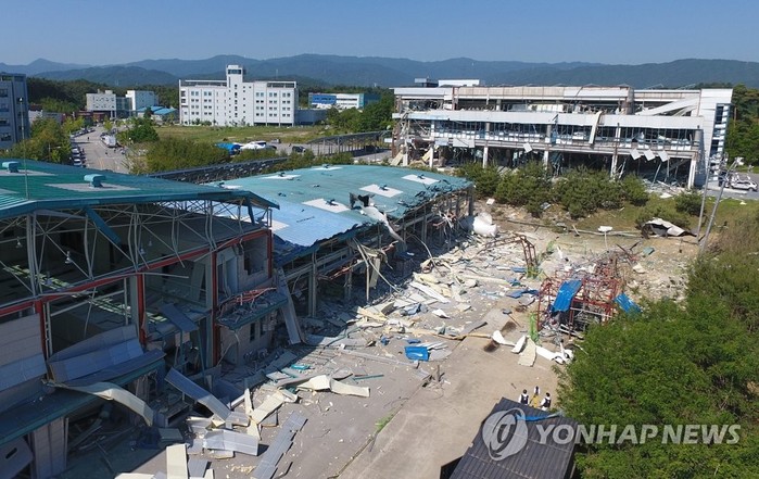 | ▲ 강릉벤처 공장 수소탱크 폭발사고 현장 모습. (사진제공=연합뉴스) |