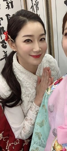 공개된 사진 속 김하영은 한복을 입고 우아한 미모를 뽐내고 있다.