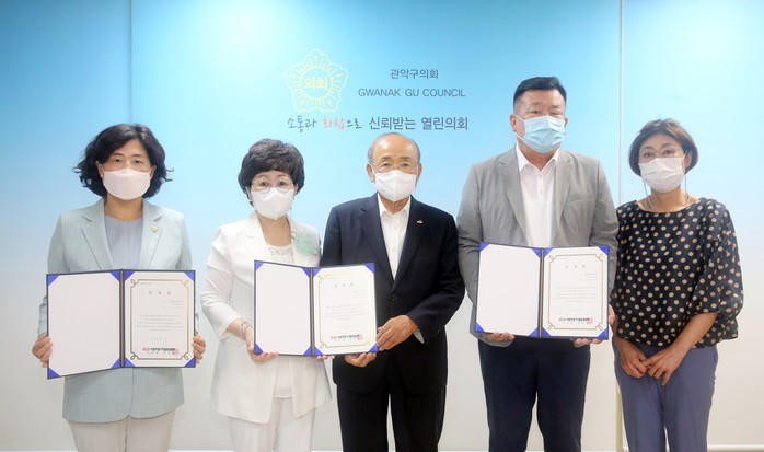 [시민일보 = 여영준 기자] 서울 관악구의회는 최근 장현수 부의장과 박정수 보건복지위원장, 왕정순·김순미 의원이 (재)사랑의장기기증운동본부 홍보대사로 위촉됐다고 밝혔다.