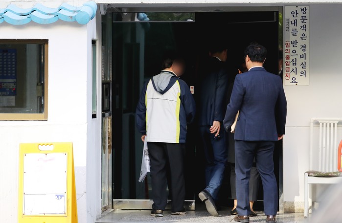 ▲ 23일 오전 서울 서초구 방배동 조국 법무부 장관의 자택 현관에 검찰 관계자들이 압수 수색을 하기 위해 들어가고 있다. (사진제공=연합뉴스) |