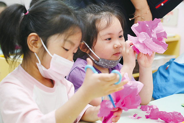 어버이날을 앞둔 7일 서울 성동구 송정동 행복가득 어린이집에서 어린이들이 카네이션을 만들고 있다.