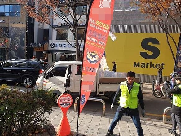 | ▲ 지난 11월 홍대걷고싶은거리 일대 불법유동광고물 정비 모습. (사진제공=마포구청) |