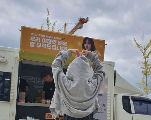 공개된 사진에는 커피차 앞에서 하트를 그리고 있는 이정현의 뒷모습이 담겨있다. 특히 이정현을 위한 팬들의 '우리 이정현 배우 잘 부탁드립니다', '오늘은 정현이가 쏩니다' 문구가 눈길을 사로잡는다.