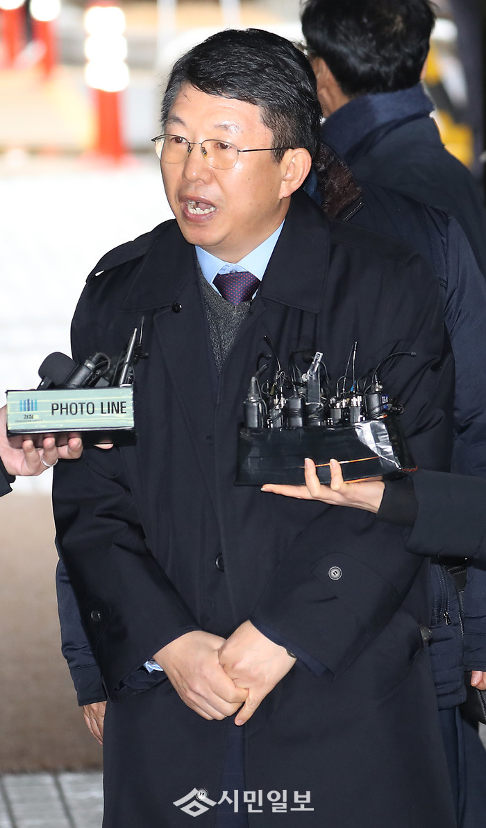 | 2014년 세월호 참사 당시 충분한 초동 조치를 하지 않아 많은 승객을 숨지게 한 혐의를 받는 김석균 전 해양경찰청장이 8일 영장실질심사를 위해 서초동 서울중앙지법으로 향하고 있다./연합뉴스 |