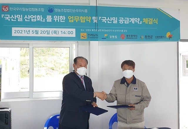 농협으로는 국내 유일 국산밀 생산단체인 한국우리밀농협은 이번 국산밀 공급 업무협약을 계기로 순우리식품에 연간 3000t 규모의 밀 원맥을 공급한다,