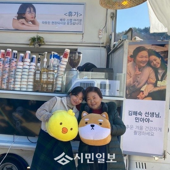 한지민이 두 사람을 위해 "김해숙 선생님, 민아야~ 추운 겨울 건강하게 촬영하세요"라는 글과 함께 커피차를 선물한 것.