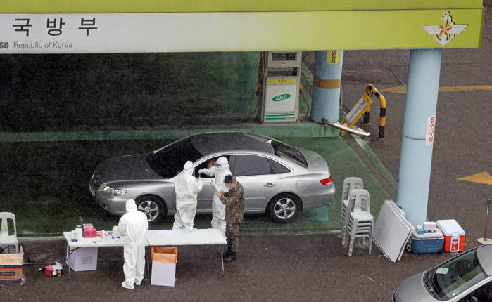 이에 따라 국방부는 밀접 접촉자로 분류된 20여명에 대해 2주간 자가 격리하도록 하는 한편 이날 오전 영내 임시 검사소를 설치해 확진자와 동선이 겹치는 인원 등을 대상으로 검사를 진행할 예정이다.