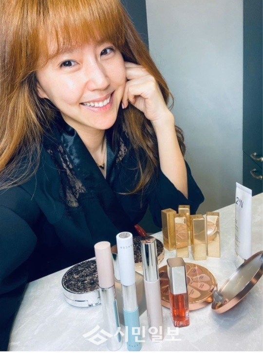 이윤미가 자신의 인스타그램에 "조만간 저의 엄청난 화장대를 공개할께요 ㅎ"라는 글과 함께 두 장의 사진을 게재했다.