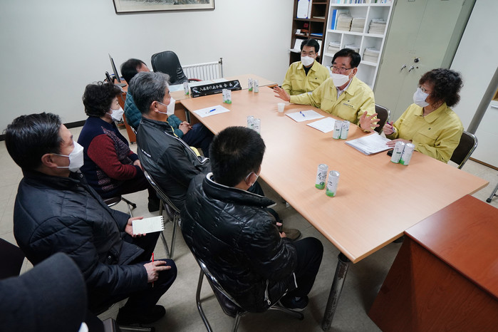 이에 앞선 지난달 28일(금)에도 유 구청장은 동대문구 첫 확진자가 발생하자 해당 주민이 거주하고 있는 휘경동의 아파트를 방문해 주민들 대표들 및 주민들에게 방역 상황 등을 설명하고 마스크와 손소독제를 각각 2,100개씩 주민들에게 배부한 바 있다.