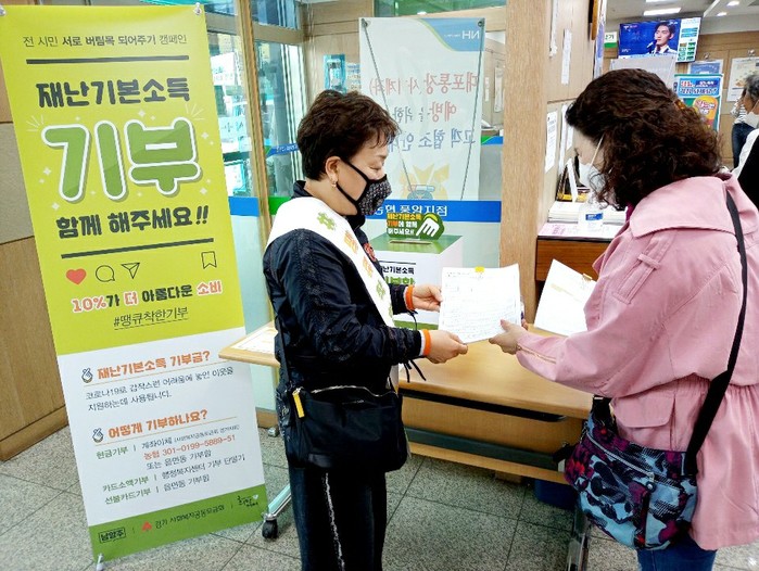 경기 남양주시 진접읍은 코로나19 극복을 위한 ‘전 시민 서로 버팀목 되어주기’ 캠페인에 동참하며 주민 모금 안내를 위한 자원봉사를 실천하고 있다. 사진은 주민들이 진접오납행정복지센터에 방문해 기부 캠페인과 관련해 설명을 듣고 있는 모습. (사진제공=남양주시청)