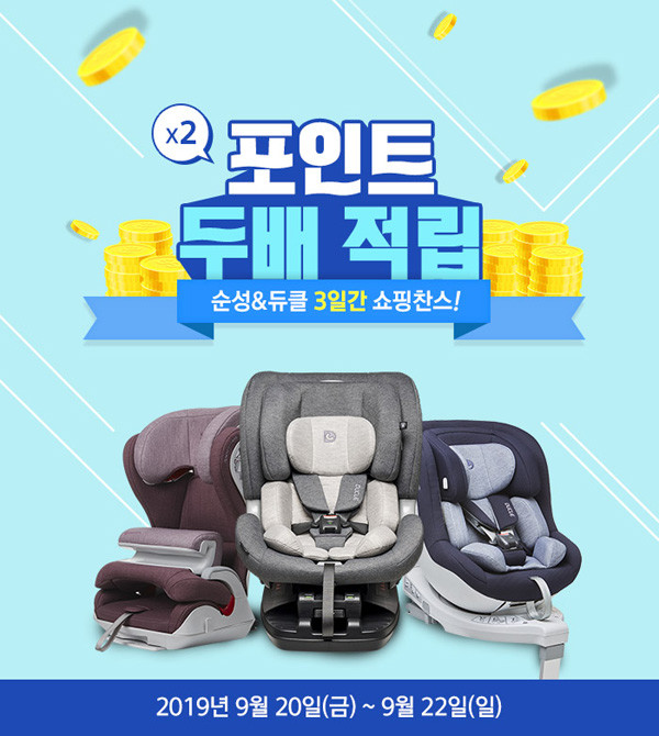 [시민일보 = 고수현 기자] 국내 카시트 전문 브랜드 순성과 듀클, 독일 유모차 브랜드 큐터스의 공식몰인 네이버 스마트 스토어 ‘순성몰’에서 9월 20일(금)부터 22일(일)까지 포인트 ‘두배 적립’ 행사를 진행한다.