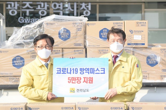 | 전남도, 광주시에 마스크 5만장 추가 전달…총 8만장 지원 / 광주광역시 제공 |