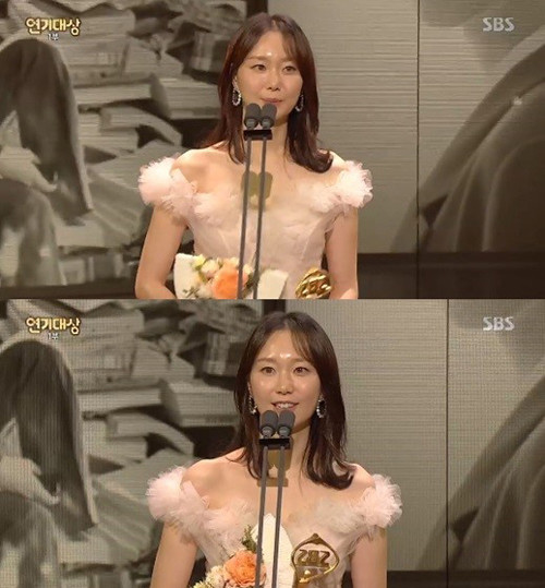 2018년 12월 31일 열린 ‘SBS 연기대상’에서 ‘친애하는 판사님께’로 신인상을 수상한 이유영은 베이지 컬러가 감도는 드레스를 입어 청순한 매력을 과시했다. 특히 가느다란 이유영의 얼굴선과 팔, 다리는 노출을 하지 않았음에도 분위기를 압도했다.