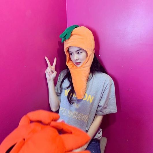 사진 속 이선빈은 당근 탈을 쓰고 있다. 이때 이선빈의 시선은 카메라가 아닌 옆을 향하고 있다. 이 모습이 엉뚱한 매력을 극대화해 웃음을 자아낸다.