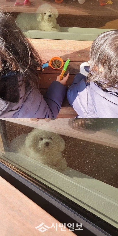 메이비는 자신의 인스타그램에 "마당에서 아이들이 소꿉놀이 하는데 루니가 애들을 따라 창가에 저러고 앉아 있다. 얼마 전 아침엔 자고 있는데 방문 앞에서 인기척을 내더니 발을 구르고 문을 밀어 아이들을 보러왔었다"고 전했다.